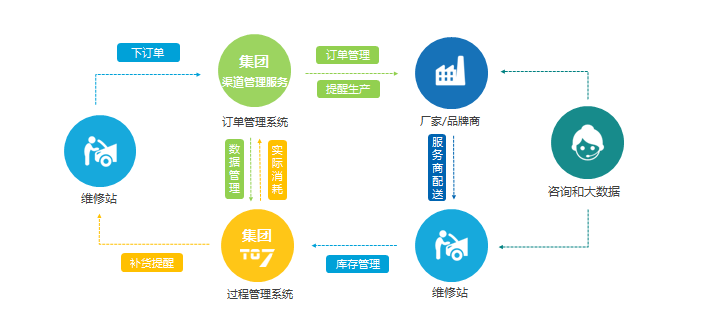 通過訂單管理系統(tǒng)和“智柒”鈑噴車間物料管理系統(tǒng),易修大師將面向兩端客戶的服務(wù)內(nèi)容不斷深化,打通信息鏈,實現(xiàn)針對品牌商、集團客戶,和站點的服務(wù)閉環(huán)。